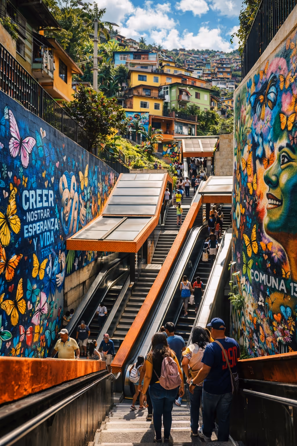 Every wall in Comuna 13 tells a story now. Vibrant murals cover buildings that once bore bullet holes. The escaleras eléctricas, outdoor escalators built in 2011, transformed a neighborhood where people once struggled up hundreds of steep steps just to get home. Hip-hop and breakdancing replaced gunfire. Art workshops replaced fear.