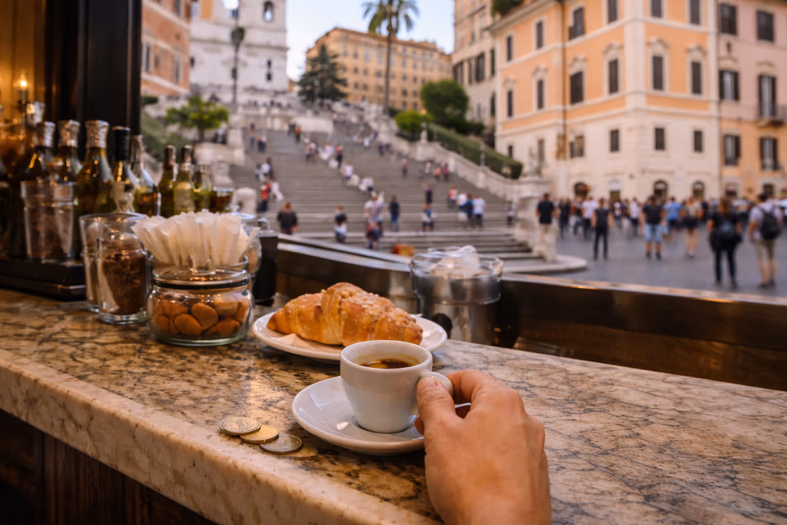 I ordered an espresso and a cornetto with a confidence I did not fully possess, then paid with coins that felt heavier than they should. There is something quietly humbling about money that is small enough to disappear into your palm.